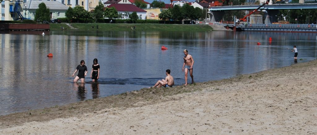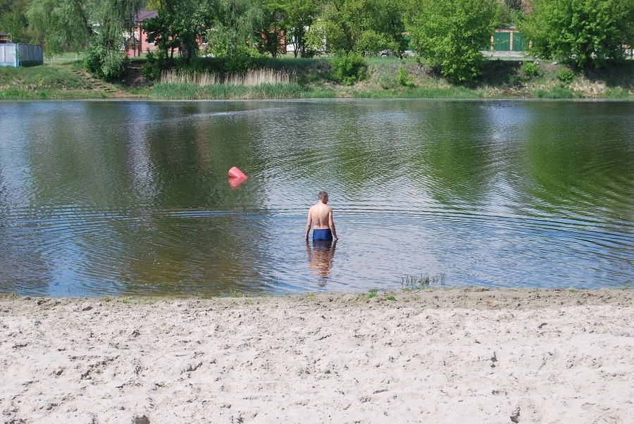 На городском пляже «Собачий остров» подростки открыли купальный сезон, хотя по эмоциональным возгласам купающихся вода была несколько прохладной.