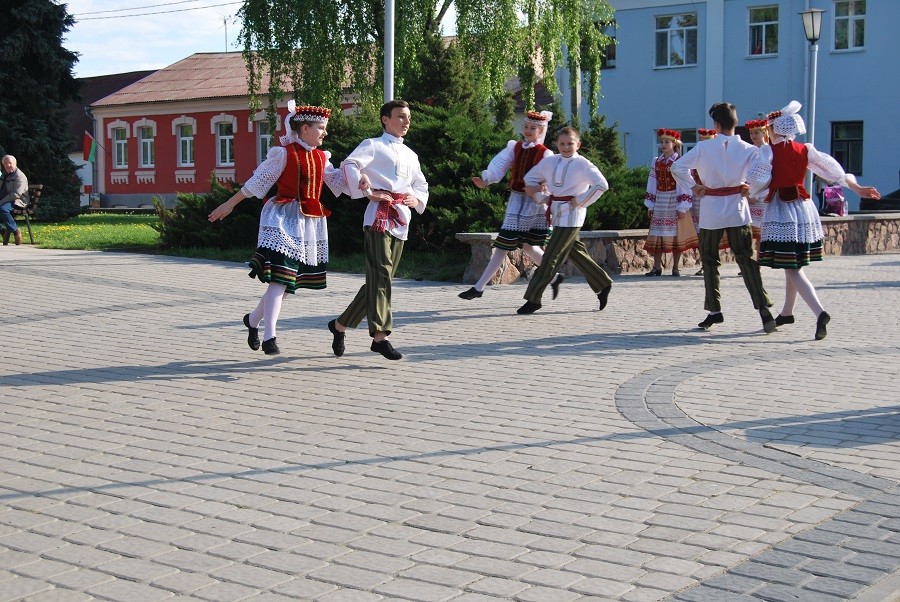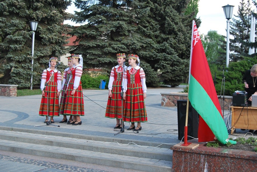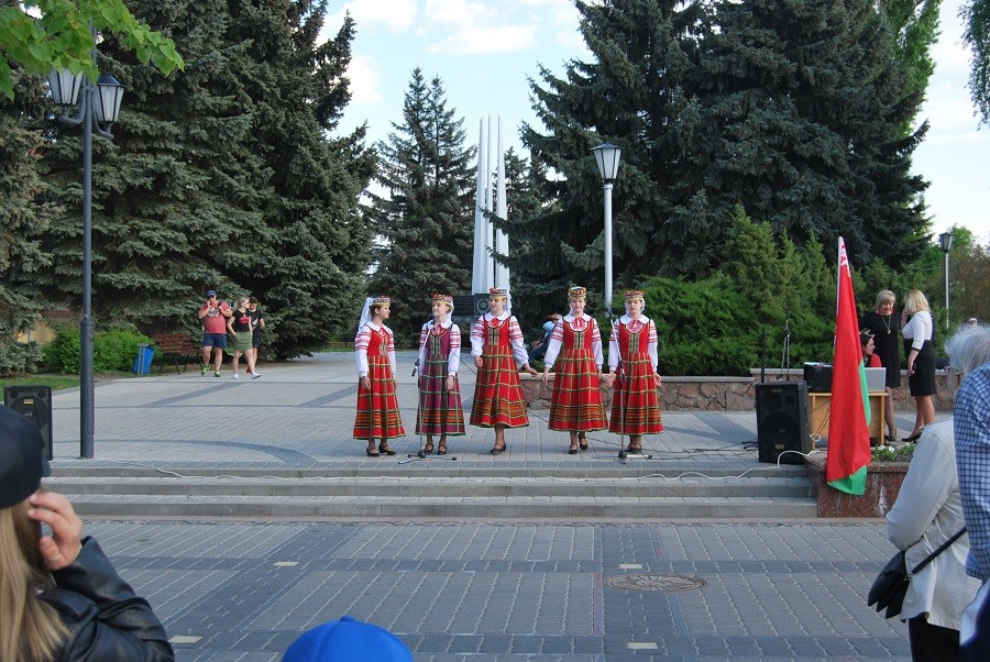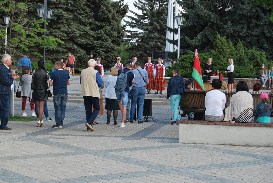 Организаторы фестиваля «Перекресток» напомнили горожанам, что 12 мая в стране отмечается День Государственного герба и Государственного флага РБ. На импровизированной сцене преобладали народные песни и танцы.