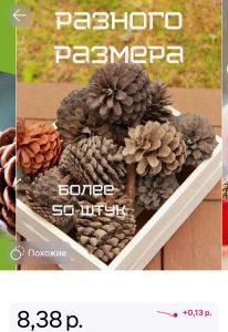 Килограмм еловых и сосновых шишек 8,38 рубля. Продавец пишет: шишки отобраны вручную и очищены от крупного мусора. Подойдут для поделок, украшений, декора.