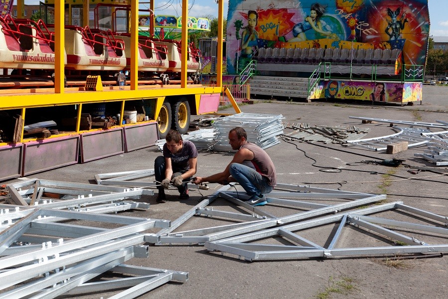 В этот раз жителей и гостей города порадуют много атракционов — автодром, горки, скамейки, американские горки.